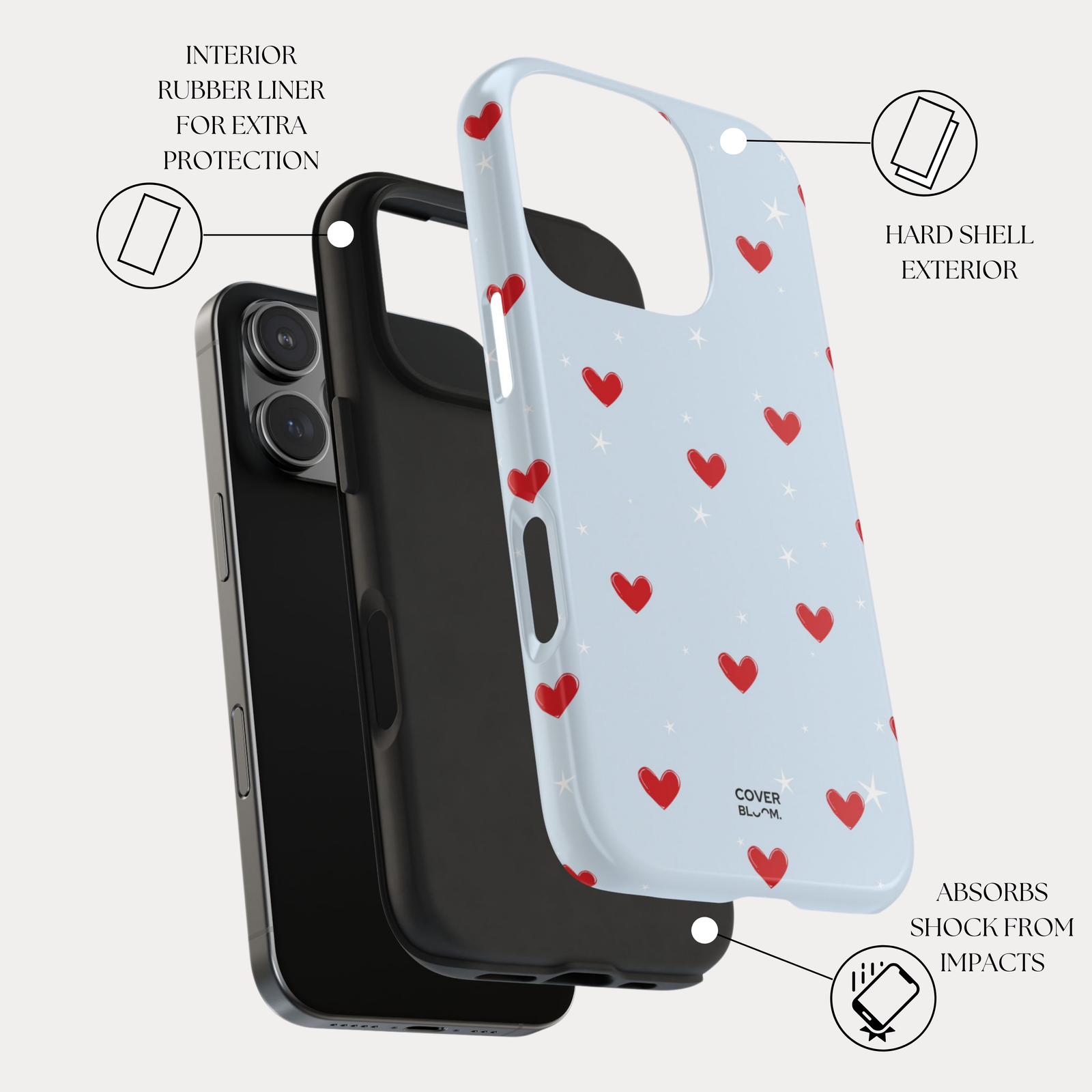 .: Interior rubber liner for extra protection (appearance may vary across phone models)