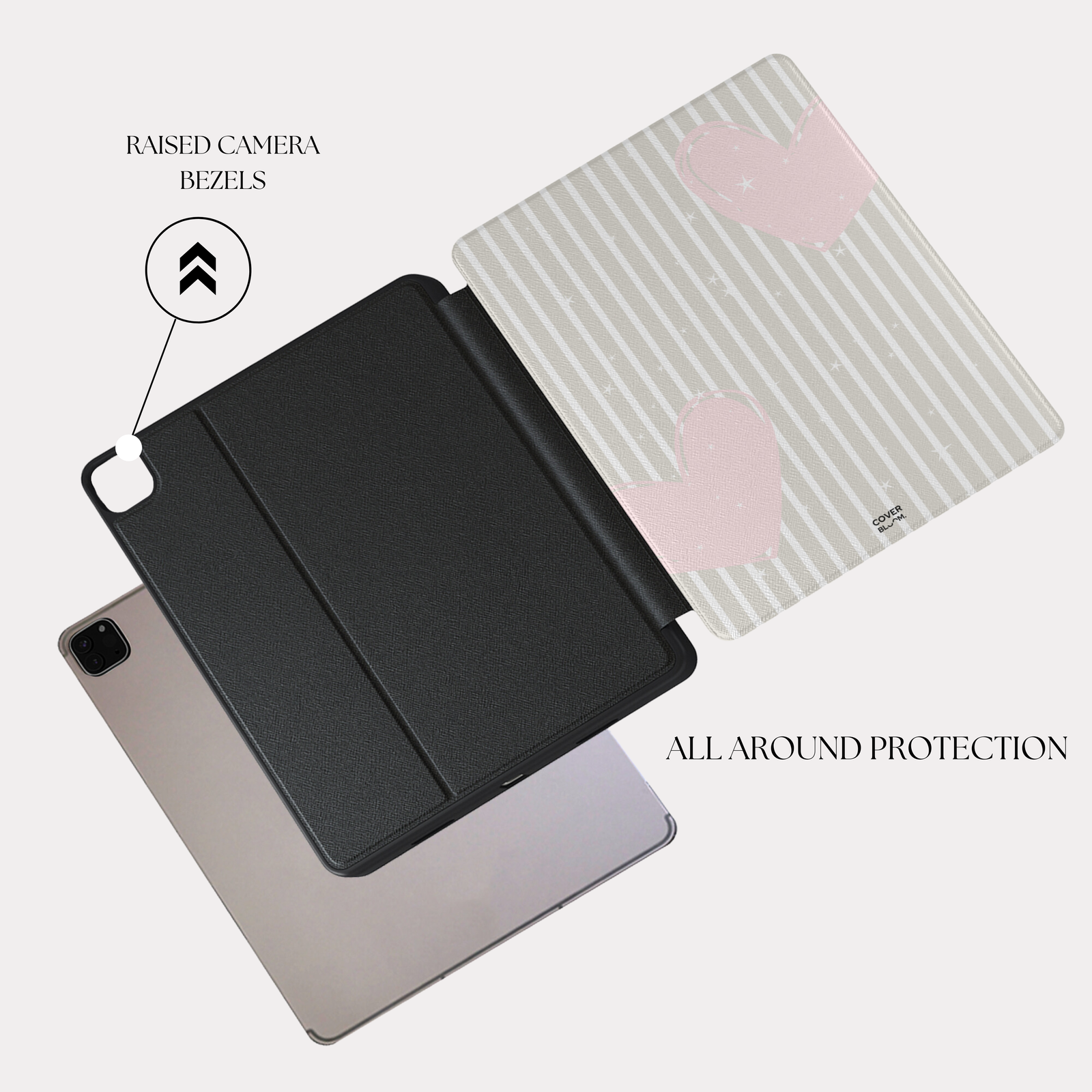 Celebrate romance and functionality with the Stella Love Aura Tablet Case, designed to protect your device in style. Featuring a chic beige background with two bold pink hearts and scattered white stars, this celestial-inspired design adds a magical touch to your tech.